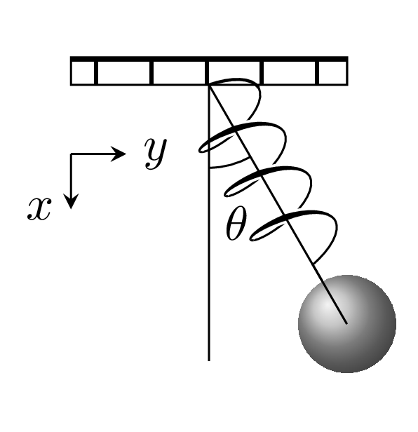 When we analysed a tilted oscillator that we transformed the equations of motion from Cartesian coordinates to polar coordinates. The same can be done here for a simple pendulum with a harmonic potential, except that the angle $\theta$ is not a constant anymore.